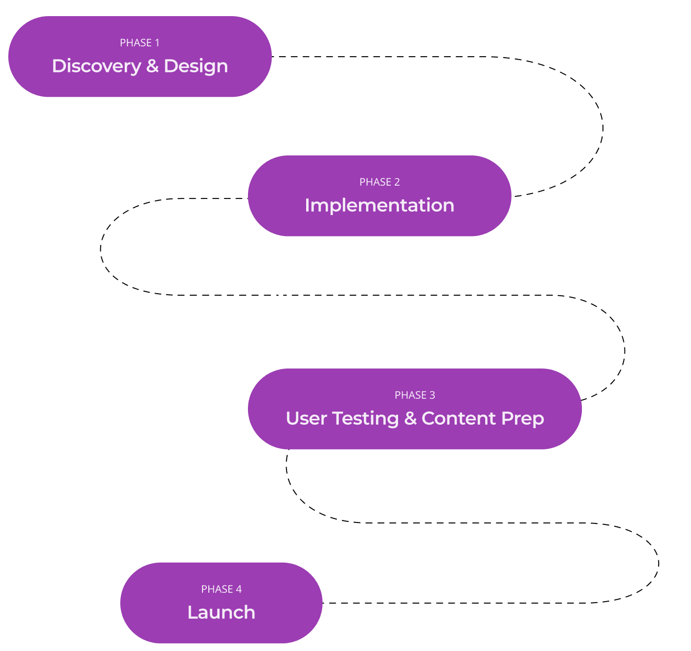 The UAT & content prep phase is where the real excitement starts to build. We’ll support your team to test the implemented solution. We’ll train your content teams, empowering them to use the content publishing features and create beautiful, impactful, and targeted content. We’ll also support your team to ensure any last-minute user experience issues are taken care of.